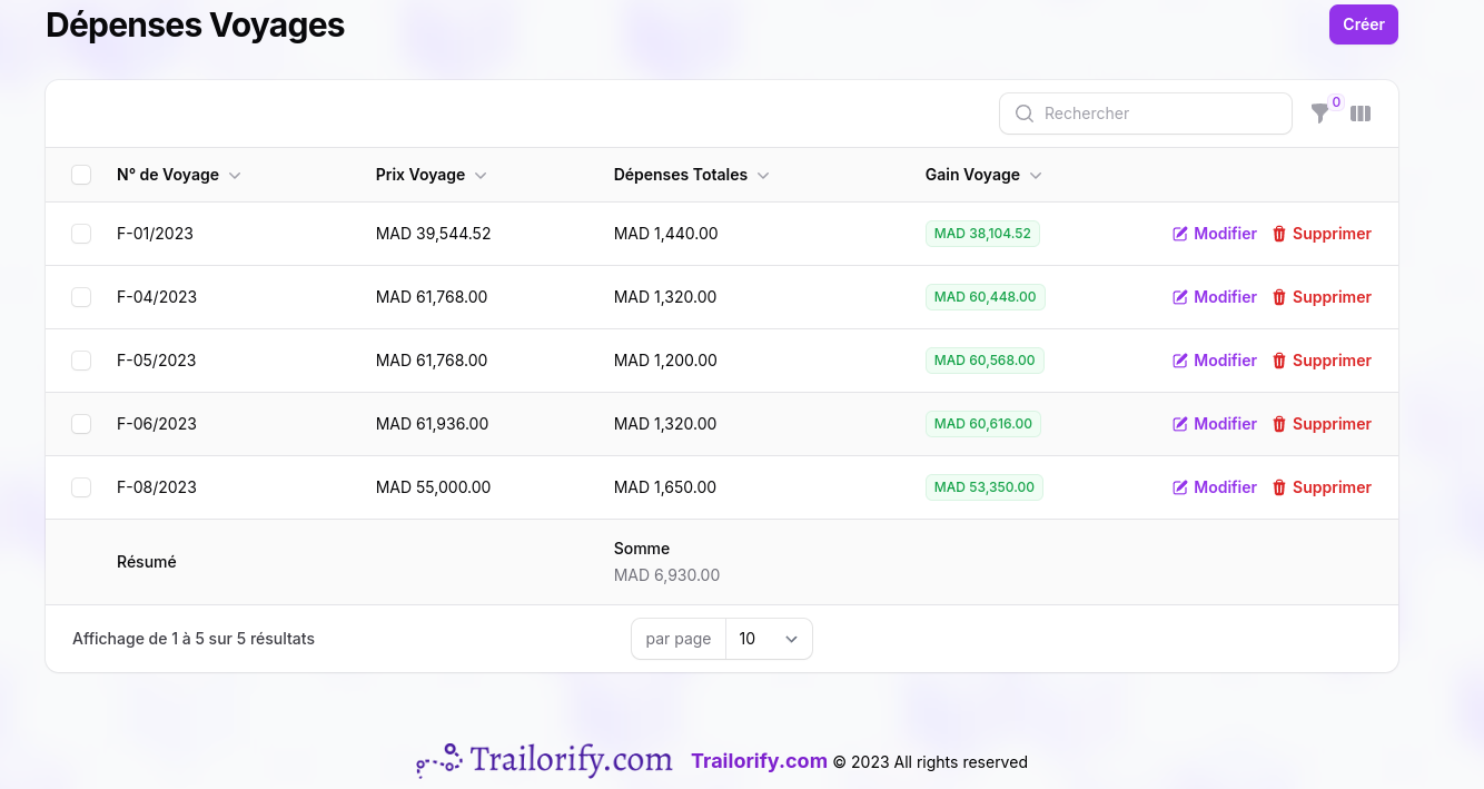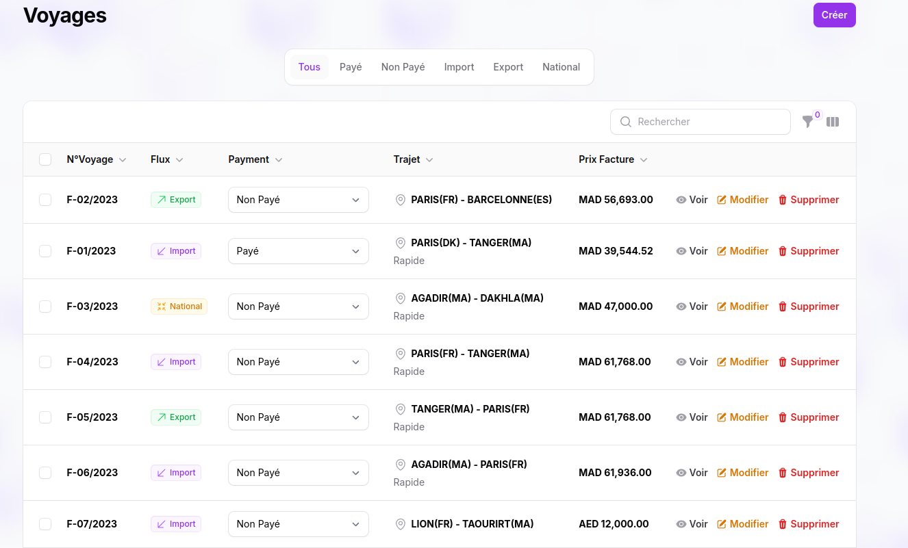 Absolument ! Notre module de calcul des dépenses/gains vous donne une visibilité claire sur vos performances financières. Vous pouvez suivre les coûts par voyage, calculer les gains, et générer des rapports financiers détaillés pour optimiser vos opérations.