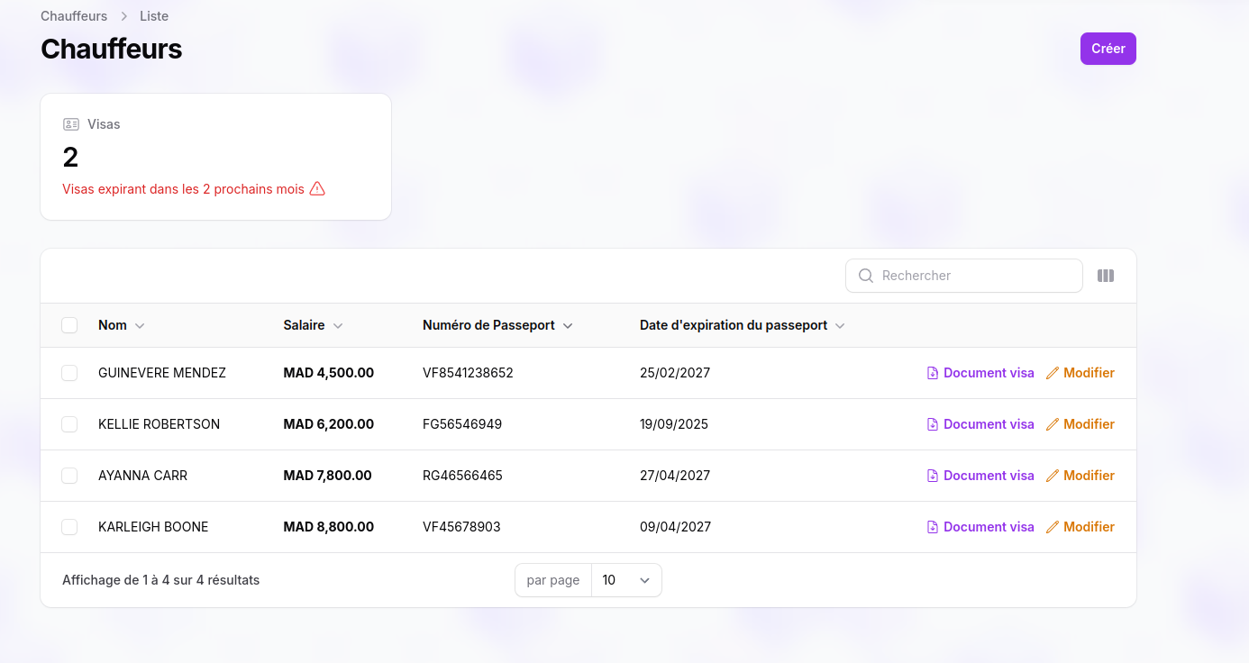 Suivez facilement les visas et documents de vos chauffeurs. Recevez des notifications avant leur expiration pour éviter tout blocage administratif ou retard inutile.