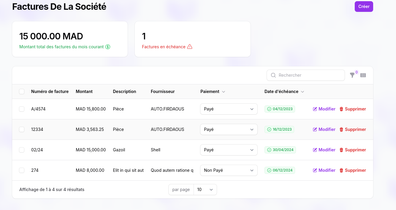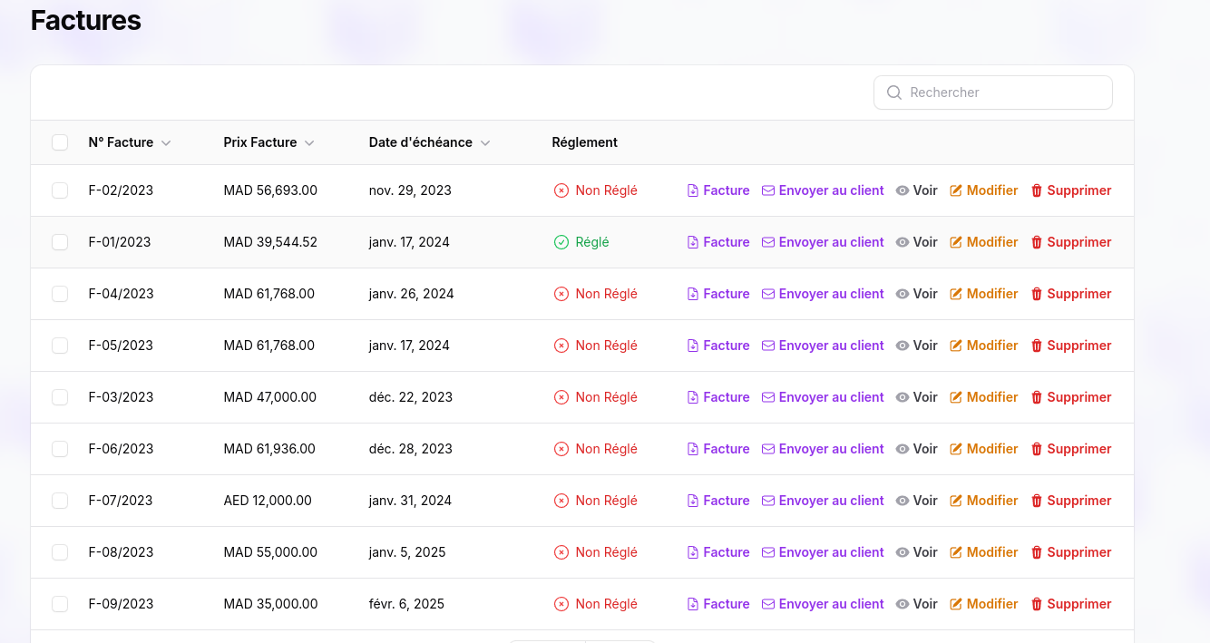 Oui, notre module de facturation intégré vous permet de créer et d'envoyer des factures directement aux clients. Vous recevrez des notifications automatiques avant les dates d'échéance de paiement pour assurer une gestion fluide de la trésorerie.